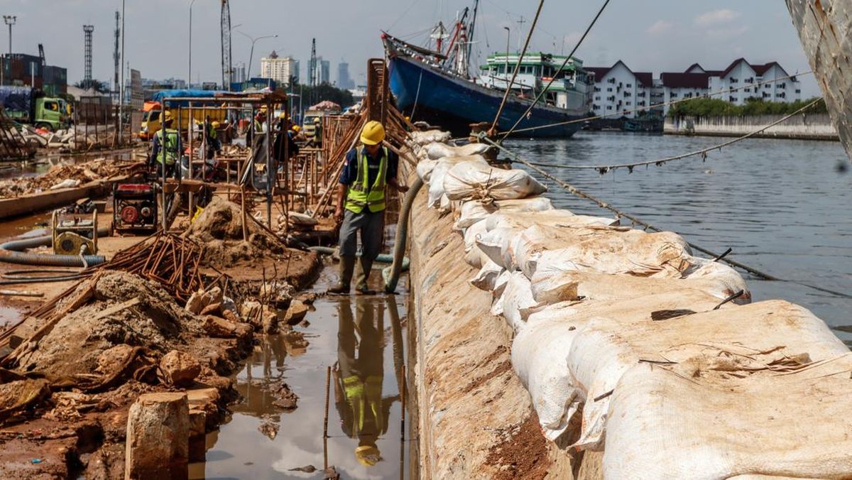 Tanggul Sunda Kelapa Jakarta Jebol Menyebabkan Lalu Lintas Macet