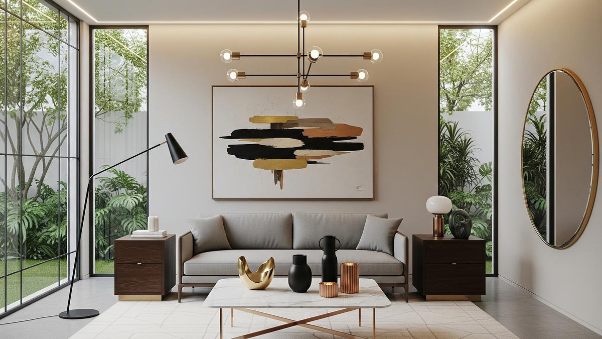 Elemen kunci dalam gaya ini mencakup sofa dengan tekstur bouclé, rak modular dari kayu yang memberikan nuansa alami, serta pencahayaan tersembunyi yang menciptakan atmosfer yang hangat. Hal ini menjadi sangat relevan, terutama bagi mereka yang tinggal di perkotaan dengan ruang terbatas.