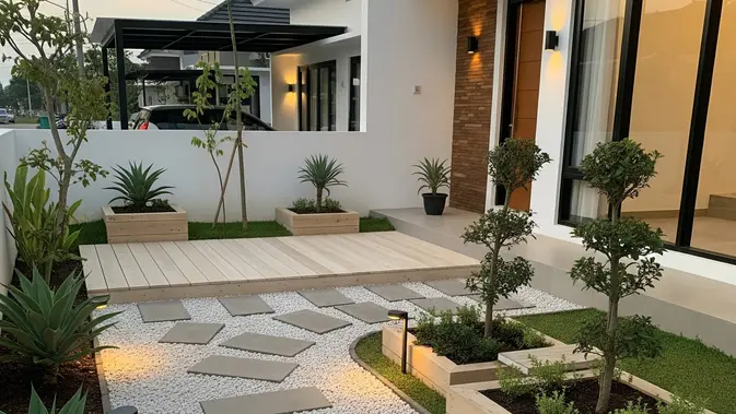Penggunaan elemen yang tepat seperti batu dan tanaman rendah dapat menciptakan tampilan yang seimbang dan menarik. Selain itu, penataan yang rapi akan membuat area kecil terasa lebih luas dan nyaman.
